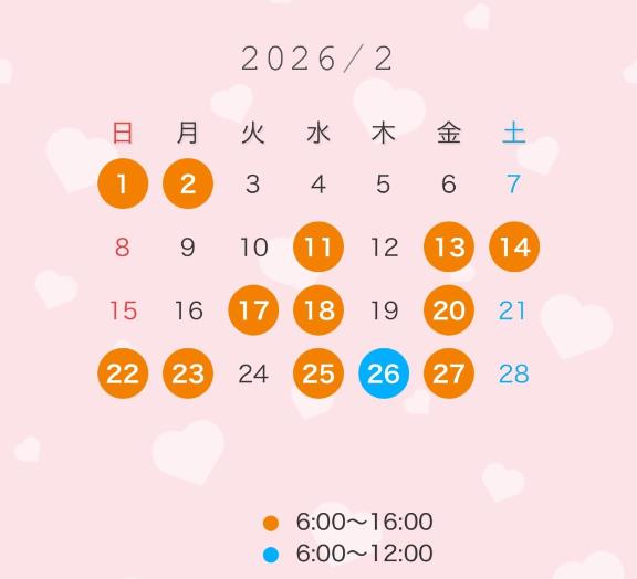 ※急遽変更になる事がありますので、最新の情報はお電話にてお問い合わせ下さい。